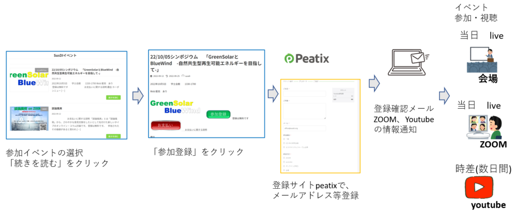 ①会場参加と②ZOOM参加はliveですが、Youtibe視聴は数日間は時差視聴が可能になります。